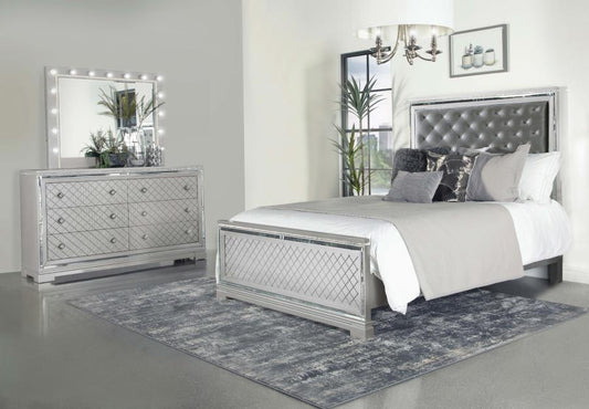 Heidi 5-piece Queen Tufted Upholstered Bedroom Set Metallic Platinum