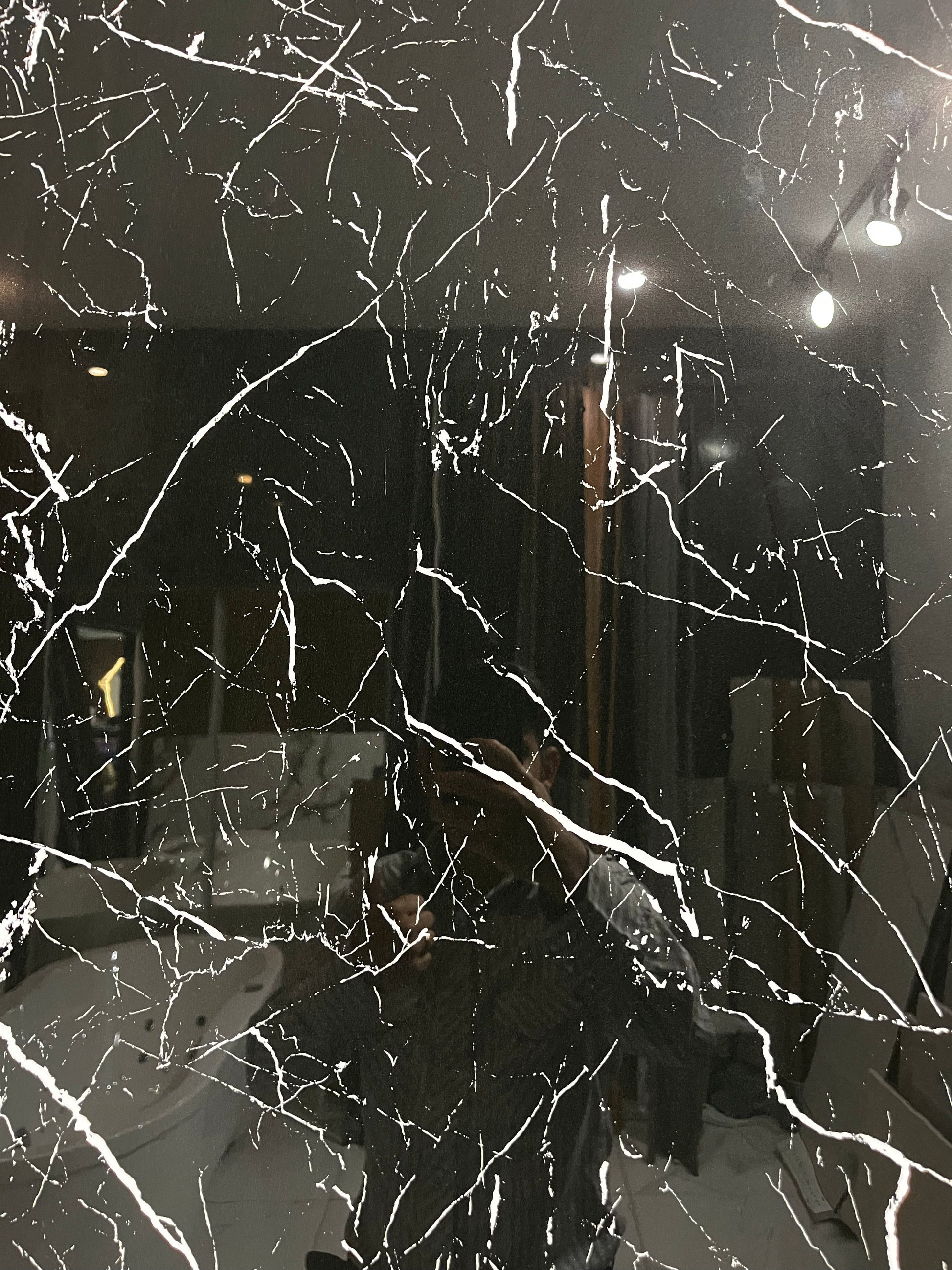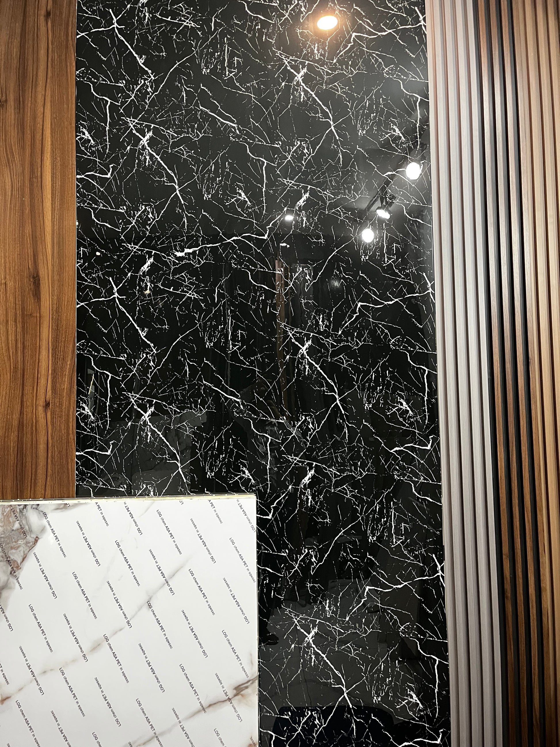 Introducing our Bamboo Fiber Sheet Marble Style Wall Panel in Black, measuring 4 feet by 9.5 feet. This striking panel features a deep black surface with subtle white veining, creating a sophisticated and modern aesthetic. The reflective quality adds an elegant touch, allowing you to see your surroundings mirrored in its surface. Perfect for creating a bold statement on accent walls or enhancing contemporary spaces, this panel combines the beauty of marble with the eco-friendly benefits of bamboo. Elevate your decor with the luxurious allure of our Black Marble Style Bamboo Fiber Panel!