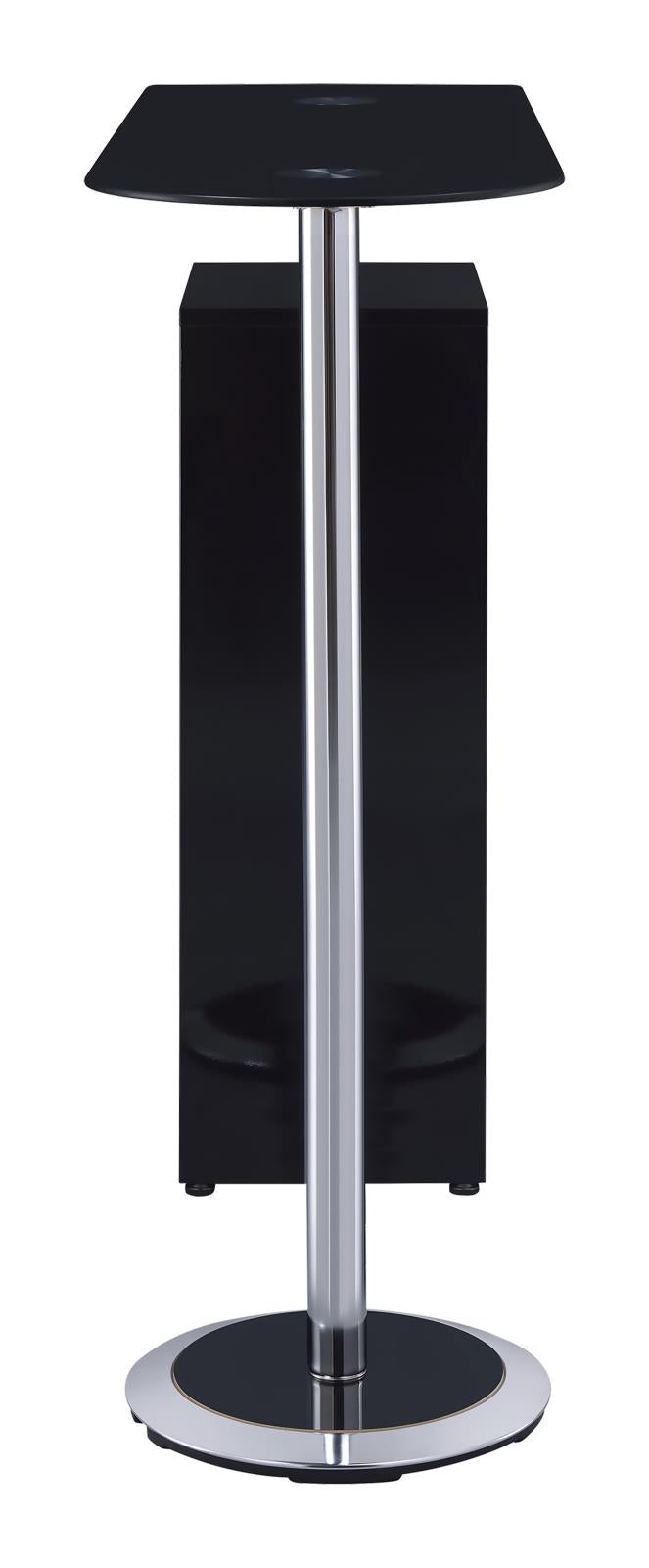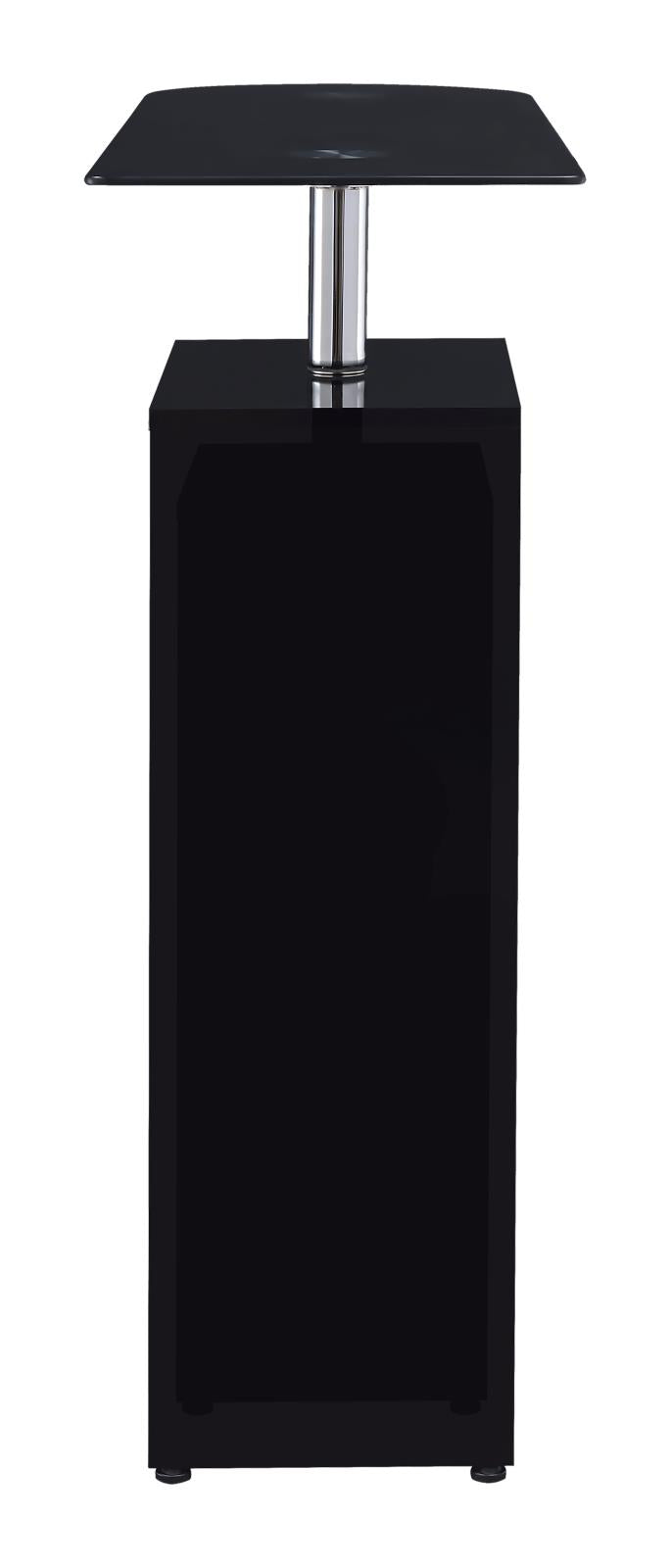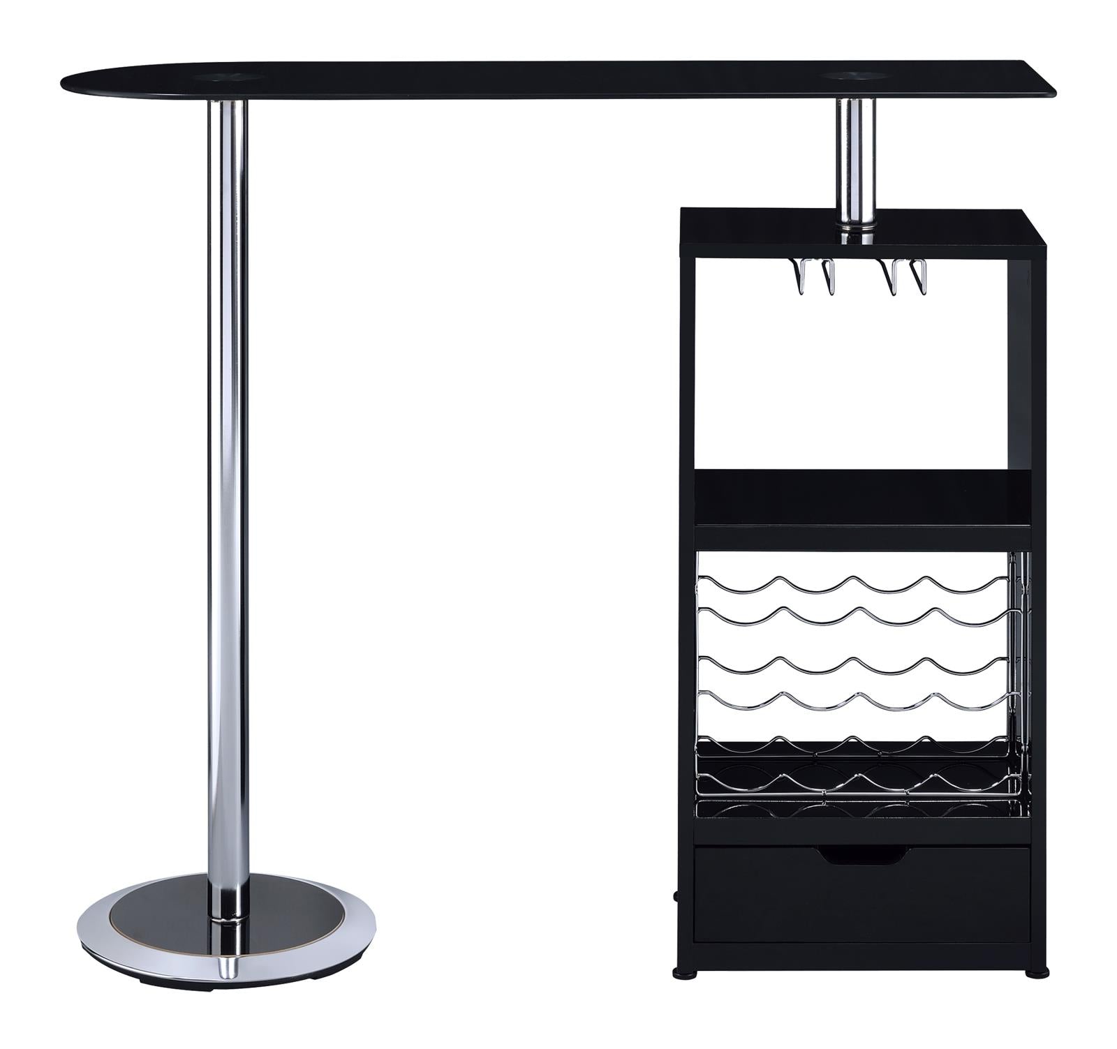 No home bar is complete without a bar table that's both functional and fashionable. Table top is rectangular and fashioned with tempered glass. Table also comes with contemporary bar unit featuring a spacious storage compartment. Also features wine bottle storage and stemware rack for added convenience. This table goes well in a home bar, of course, but also adds character to a home entertainment room.
