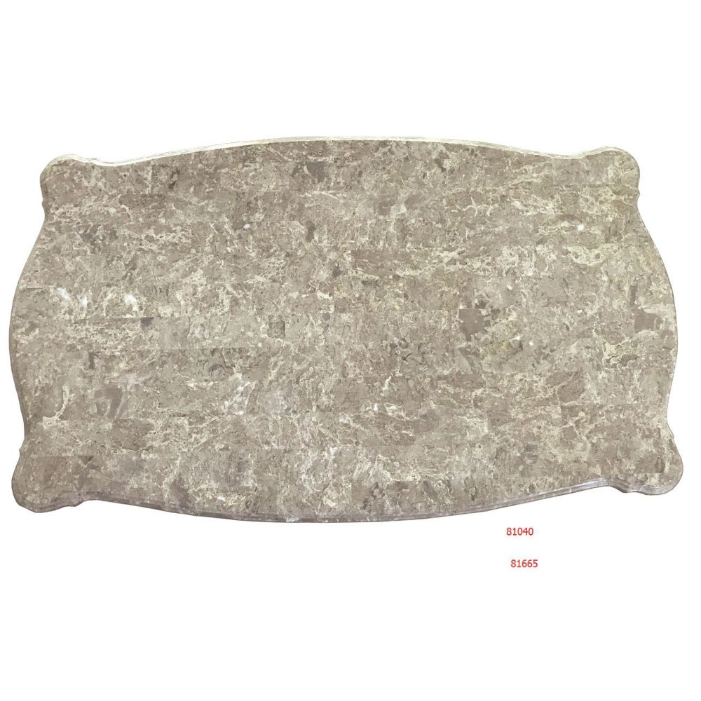 KD, Rectangular Leg Coffee Table No Storage (Open Base) Scalloped Marble Top: Spain Import Marble with MDF, 40mm Wooden Scalloped Apron with Carved Floral Motifs: Champagne Finish, Poplar Wood Wooden Queen Anne Legs: Champagne Finish, Rubber Wood