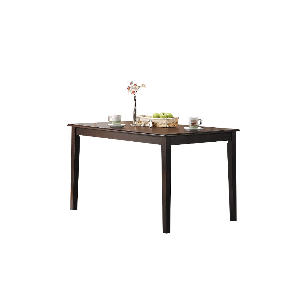 KD, Rectangular Leg Table NO Storage Fixed Top (NO Extension Included) Feature: Wooden Top & Apron, Wooden Tapered Leg CONSTRUCTION Wood Top & Apron: Espresso finish, Wood Veneer+PB Wooden Tapered Leg: Espresso finish, Rbw
