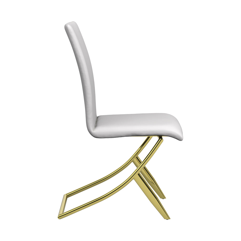 * Crisscross chair base design adds a glamorous element and sculptural feel to our new dining chairs offered in black or white leatherette