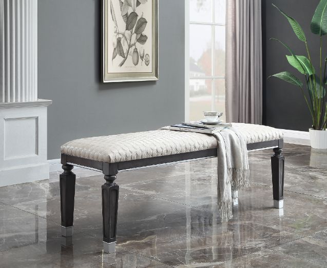 Upholstered Seat Cushion Silver Tip Leg Silver Trim Accent Hexagon Grid Patterned