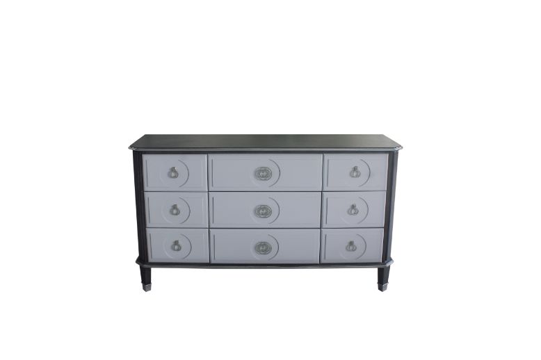 Felt-Lined Drawers 9 Storage Drawers Undermount Metal Drawer Glide Silver Tip Leg Silver Trim Accent