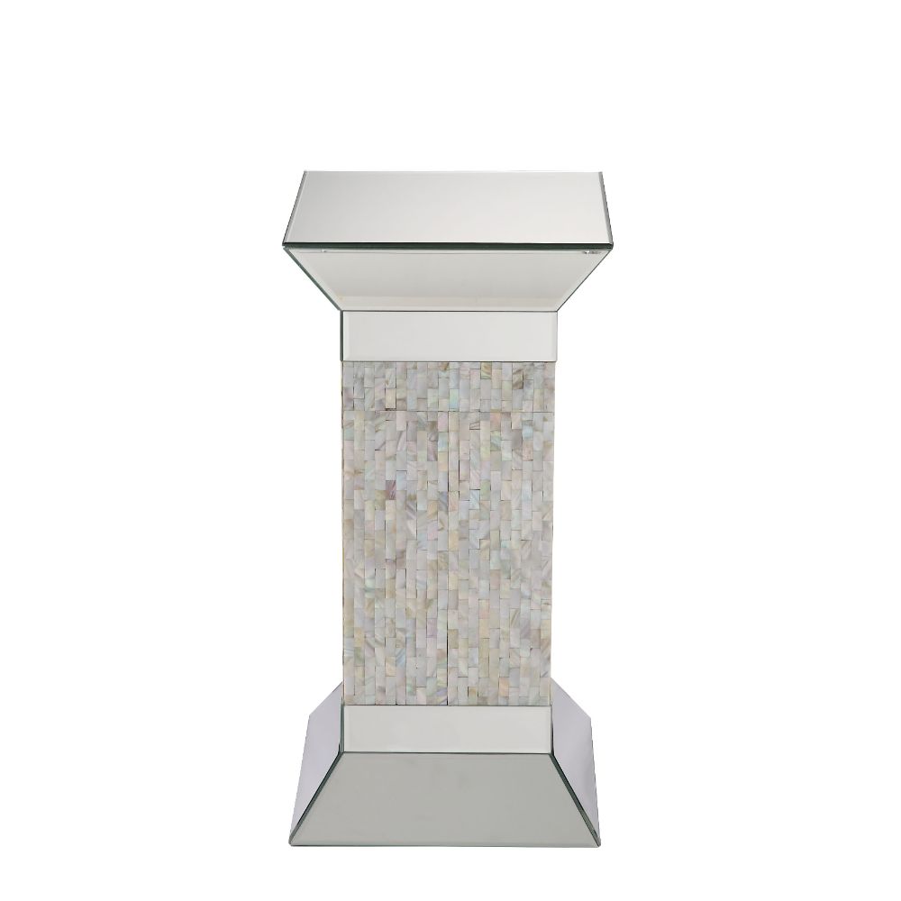 Assambled, Square Pedestal Stand NO Storage CONSTRUCTION Beveled Mirrored Top & Apron: Mirror, MDF (Fixed Top) Mirrored Pedestal