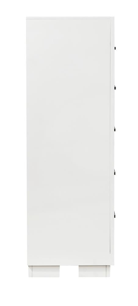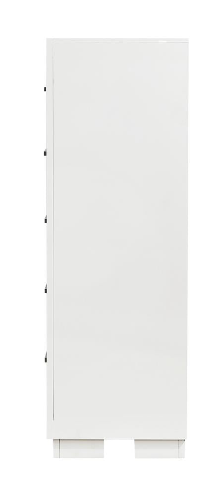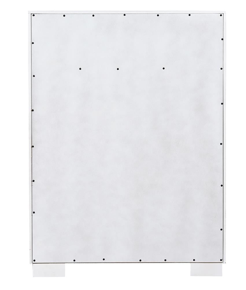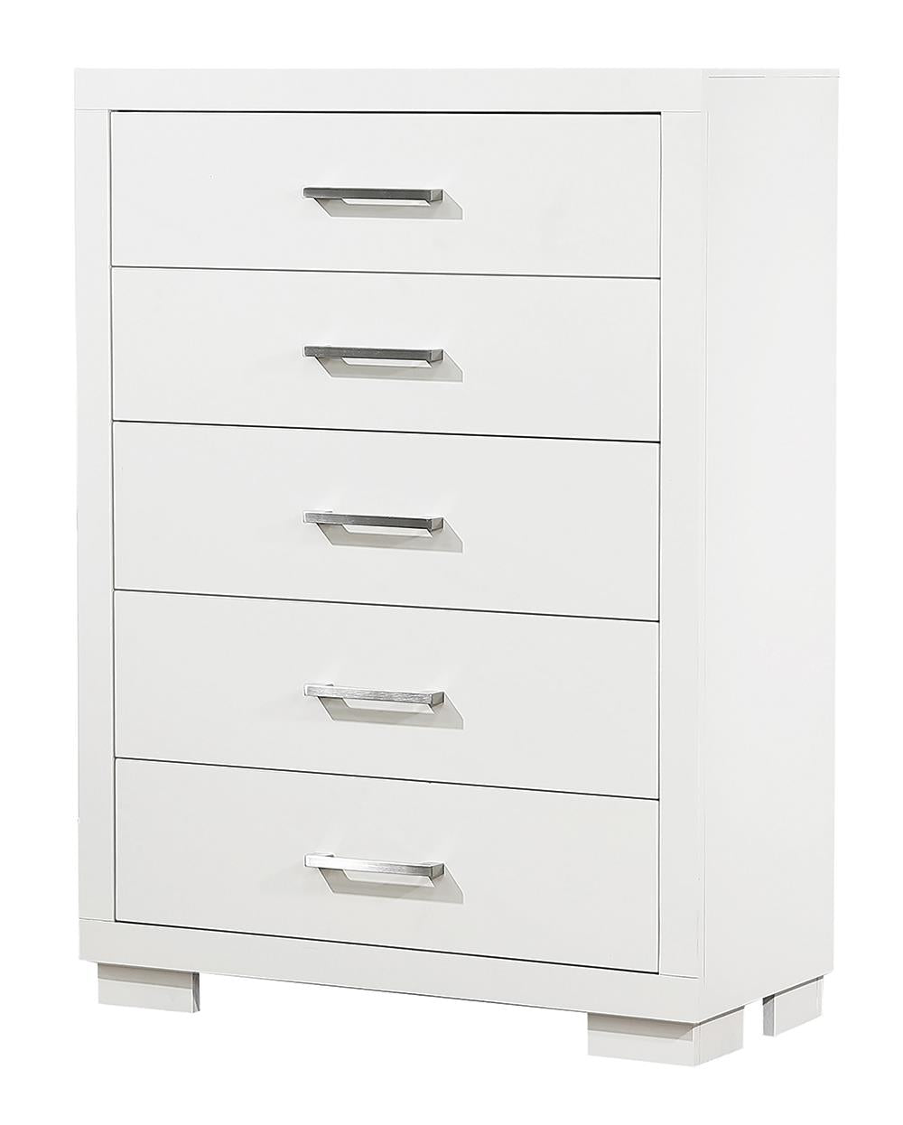 Pull together your bedroom decor with the stylish simplicity of this six-drawer chest. Bold and modern, its attractive design lends a pleasing touch of contemporary appeal. Its six sizable drawers allow for spacious storage to help you stay organized. Its soft, white finish and simple silver tone bar handles infuse it with elegant simplicity. Crafted from solid wood, this table enhances any bedroom with sturdy, durable glamour.