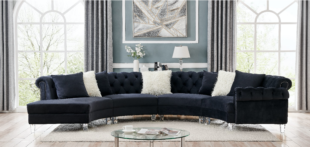 Liliana 4PC Black Velvet Sectional