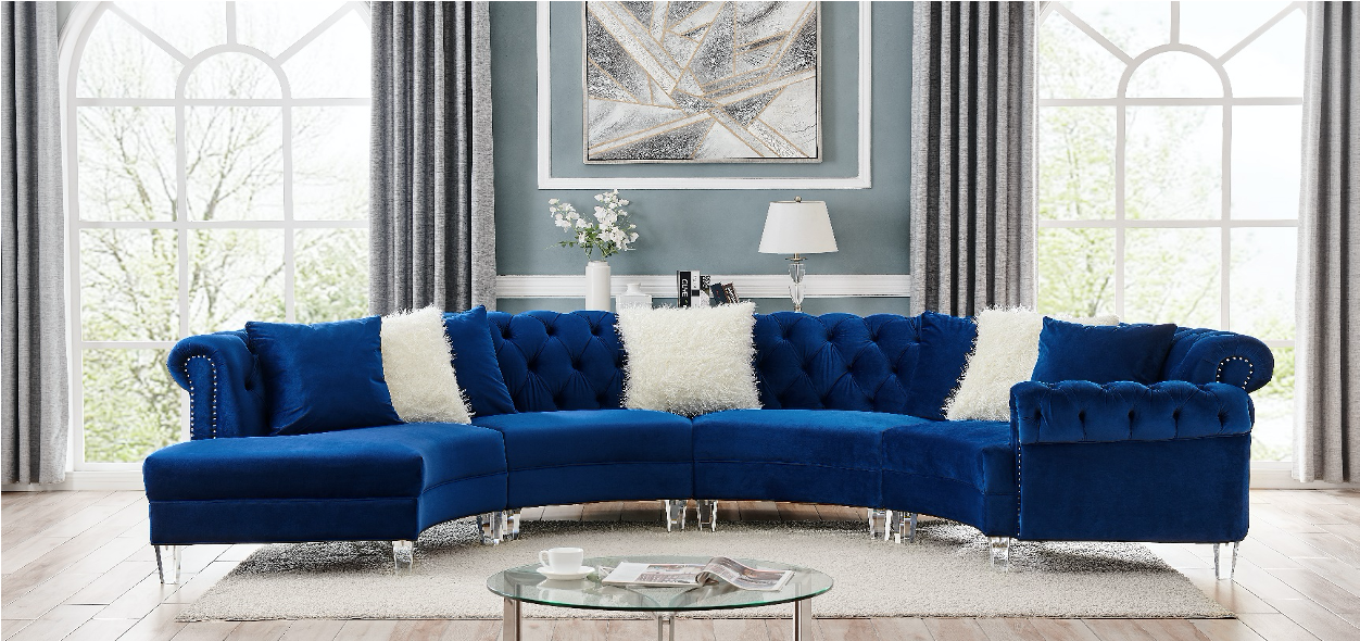 Liliana 4PC Blue Velvet Sectional