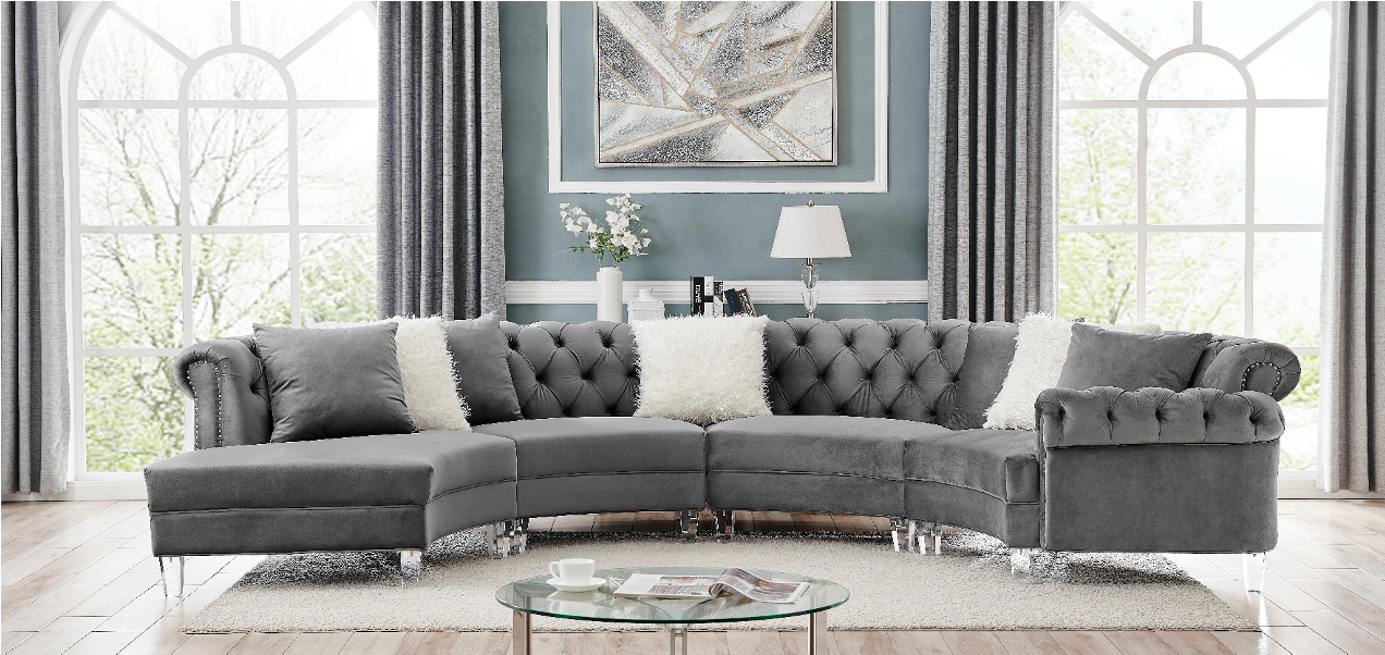 Liliana 4PC Grey Velvet Sectional