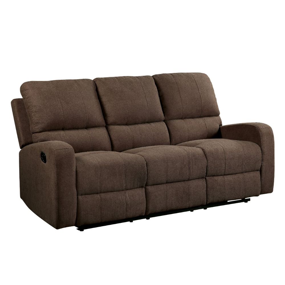 KD Back, Motion Reclining Function Tight Back & Seat Cushion (3+3) Features: Horizontal Tufted, Vertical Stitching CONSTRUCTION SEAT: Pocket Coil, Inside Frame: Wood (Pine & Ply), Foam (D28) BACKREST: Tight Cushion, Horizontal Tufted ARMREST: Track Style Metal Base with Reclining Motion: External Latch Pull Handle (Outside Armrest) Material: Fabric (Pattern) Pillow NOT Included