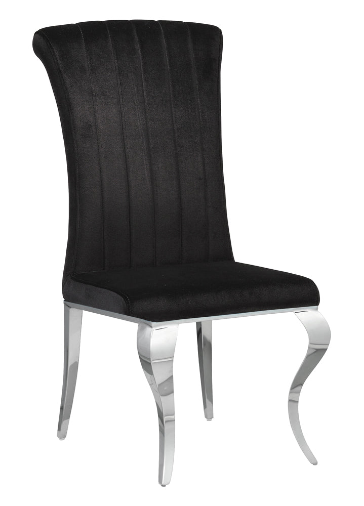 * Seats upholstered in a soft velvet fabric for a plush and luxurious look and feel