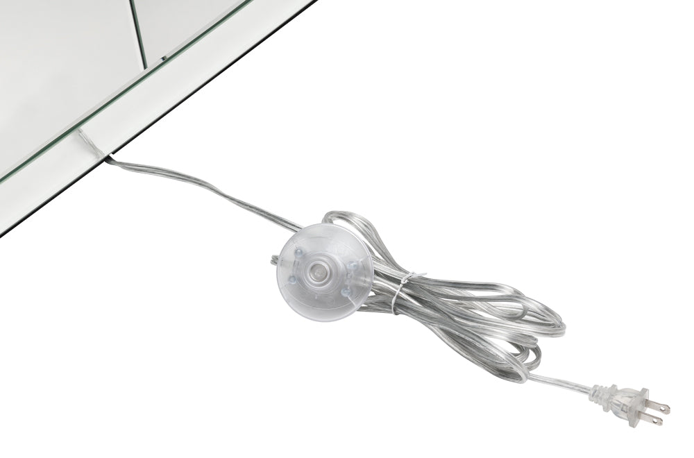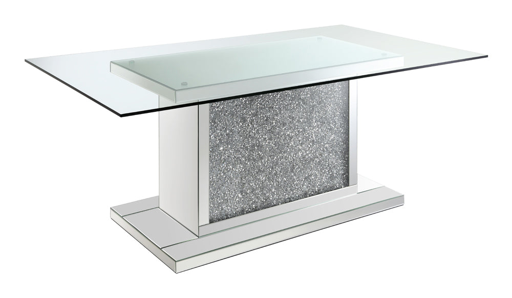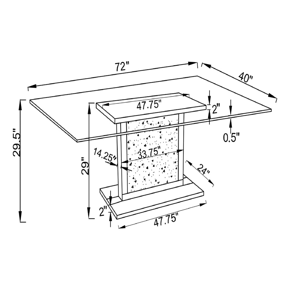 * Faux diamond encrusted rectangular pedestal base with mirror trim accents lend glistening effect