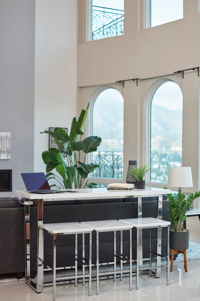 Marmot 4-piece Rectangle Counter Height Set White Marble and Chrome