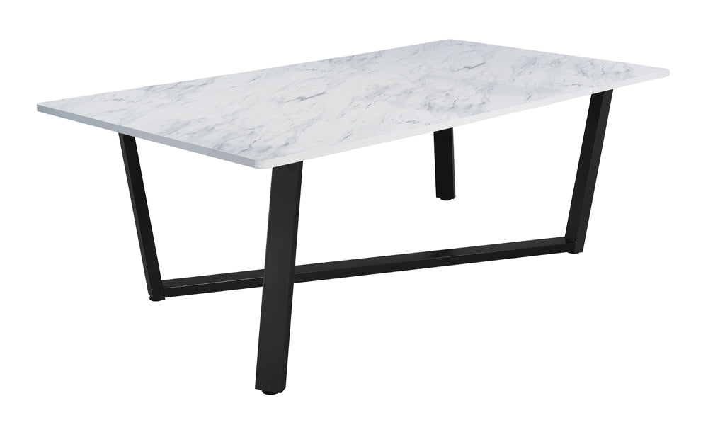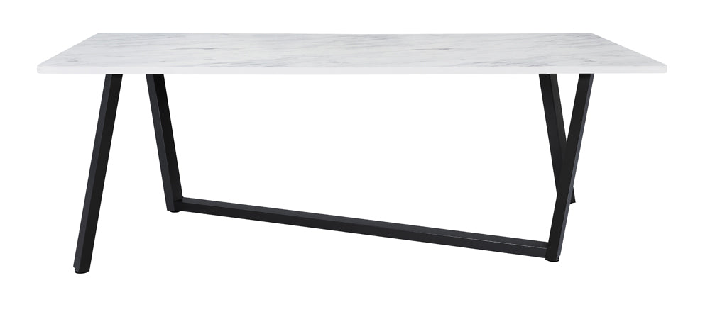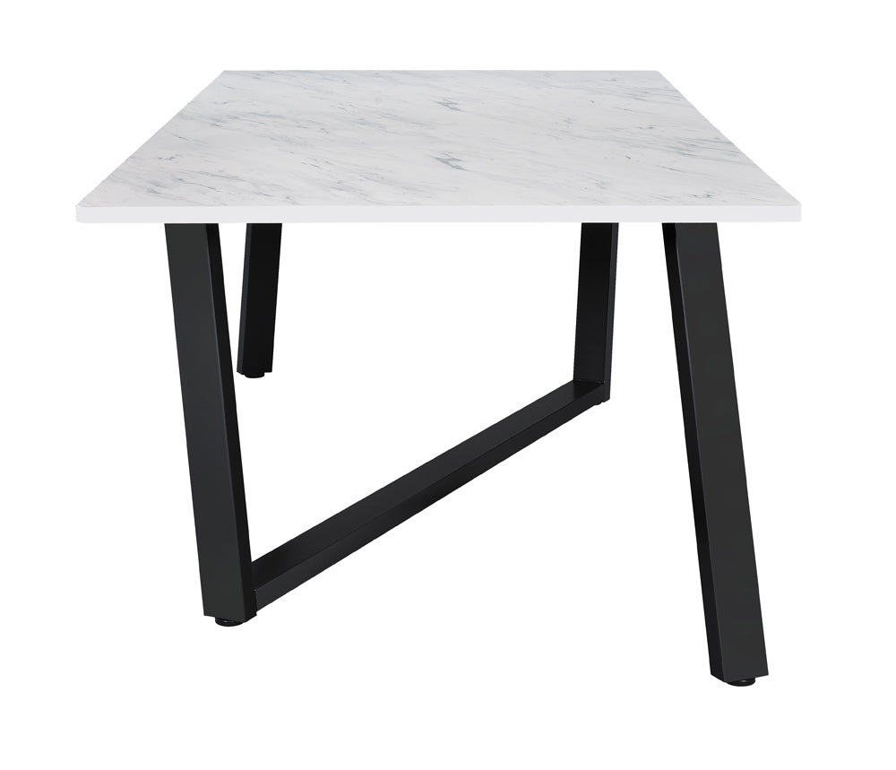 Mayer Rectangular Dining Table Faux White Marble and Gunmetal