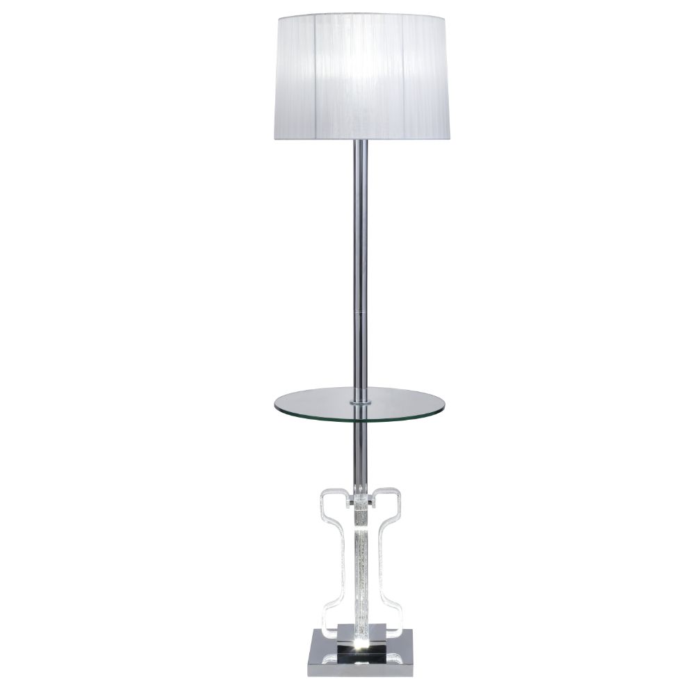 Combining form and function, this floor lamp features an open, clear acrylic and chrome-finished metal base with LED night light function. A round, tempered glass tray sits at the floor lamp s midpoint, providing a convenient place for your favorite beverage.