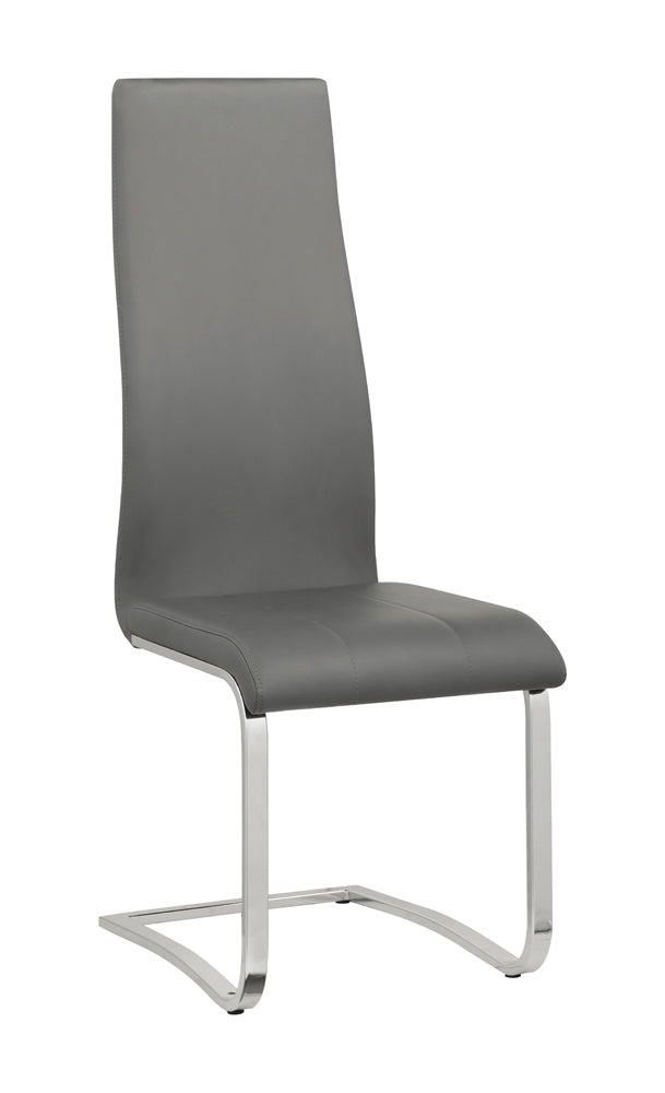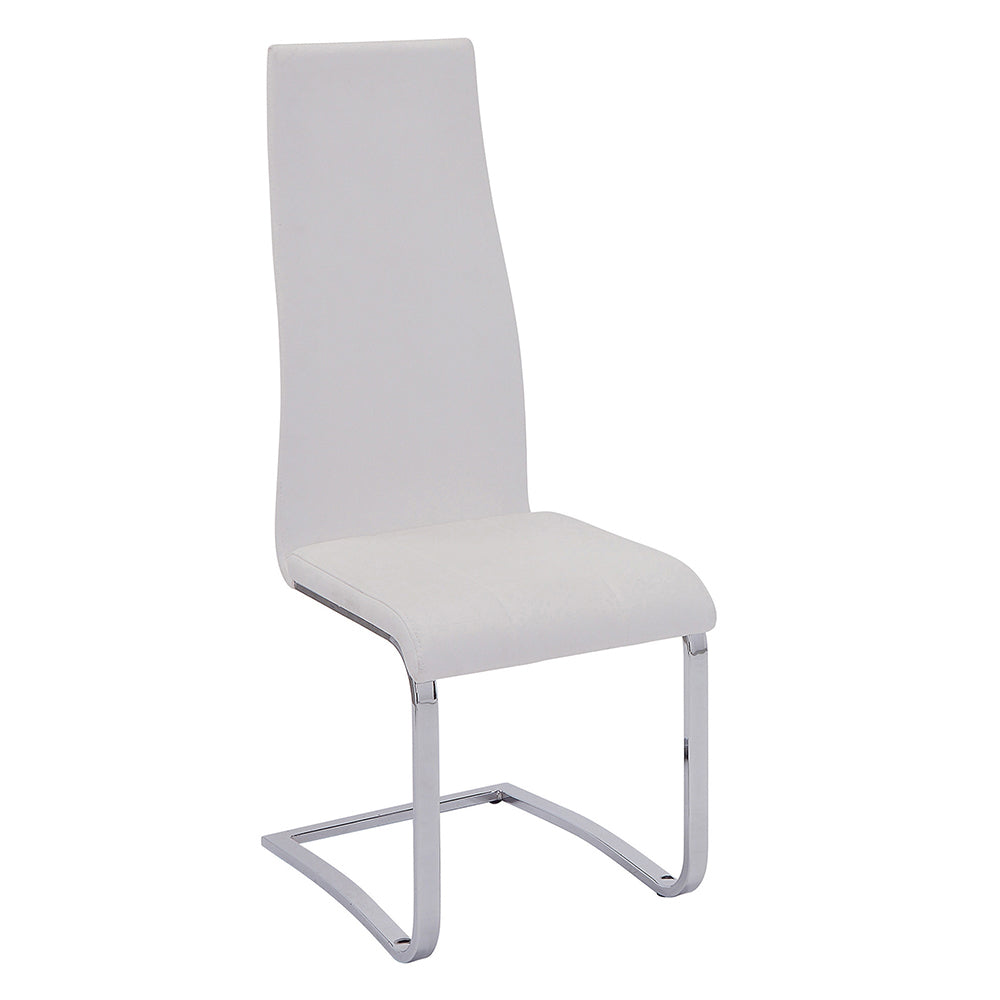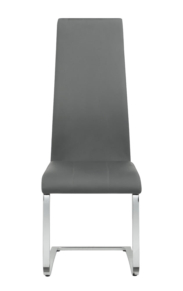* Contemporary dining group with unique chrome finish bases in the foot of the table and chairs