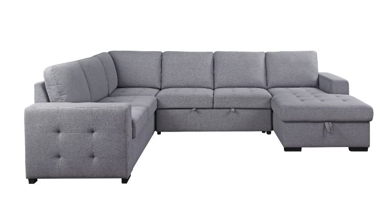 Kick back and relax after a long day at the office on this Nardo storage sleeper sectional sofa. The chaise features highly sought-after storage, ideal for keeping extra blankets and pillows hidden. The loveseat offers a pull-out bed for guests, providing more function to your living room. The tufted details add a touch of sophistication. With its beautiful neutral gray color, it is easy to mix and match aesthetics to match your style.