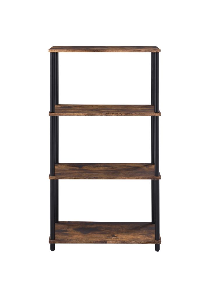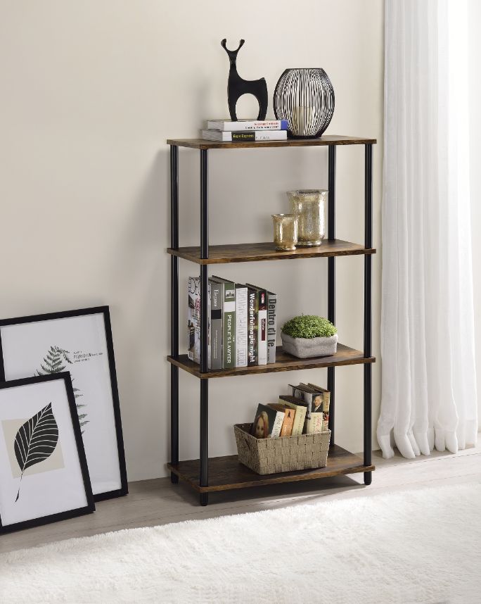Add some original and cozy ideas to your reading place. The Nypho Bookshelf is truly impressive piece of furniture that features rustic wooden shelves and black-finished metal frame. It provides four shelves for books, magazines, and other decorative items. The open storage compartments make it easy for you to highlight your collection.