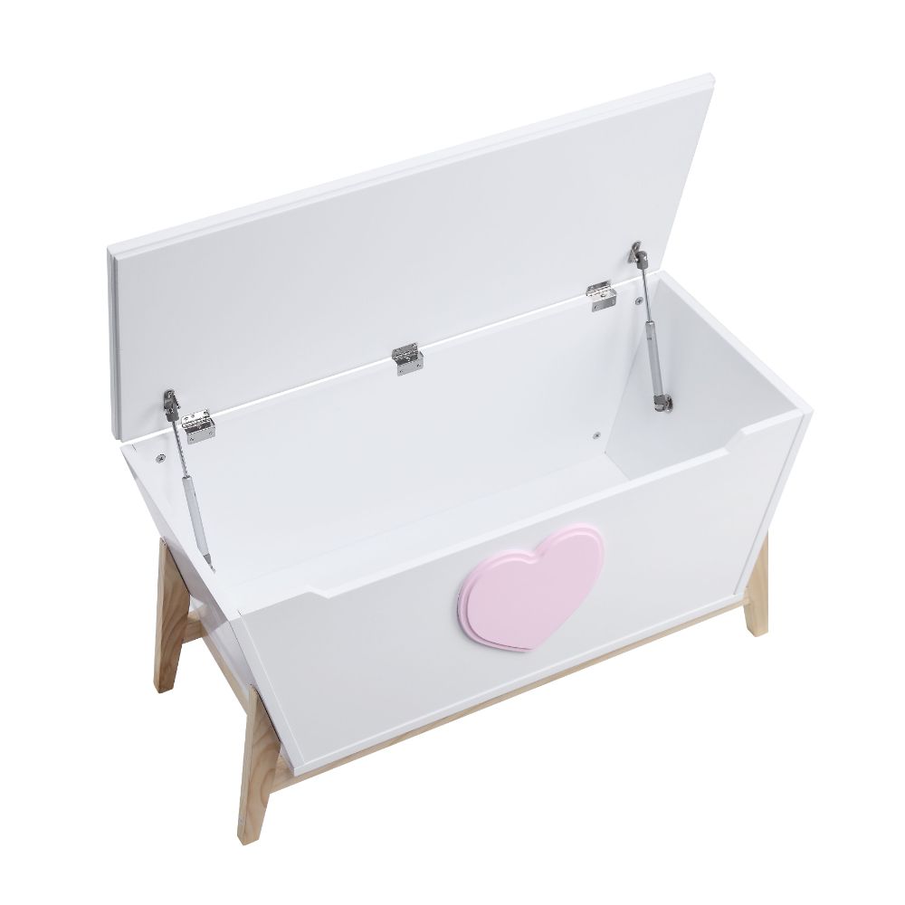 The Padma youth chest is a stunning and adorable addition to your kids' room. It has charmingly-designed storage space with lid for your kids' toys. The wooden construction makes it sturdy and stable. With the white finish and a lovely love sign in the middle, this piece is destined to be your kids' favorite.