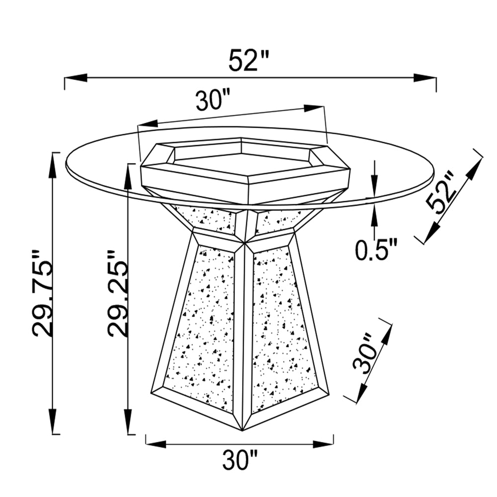 Quinn Hexagon Pedestal Glass Top Dining Table Mirror