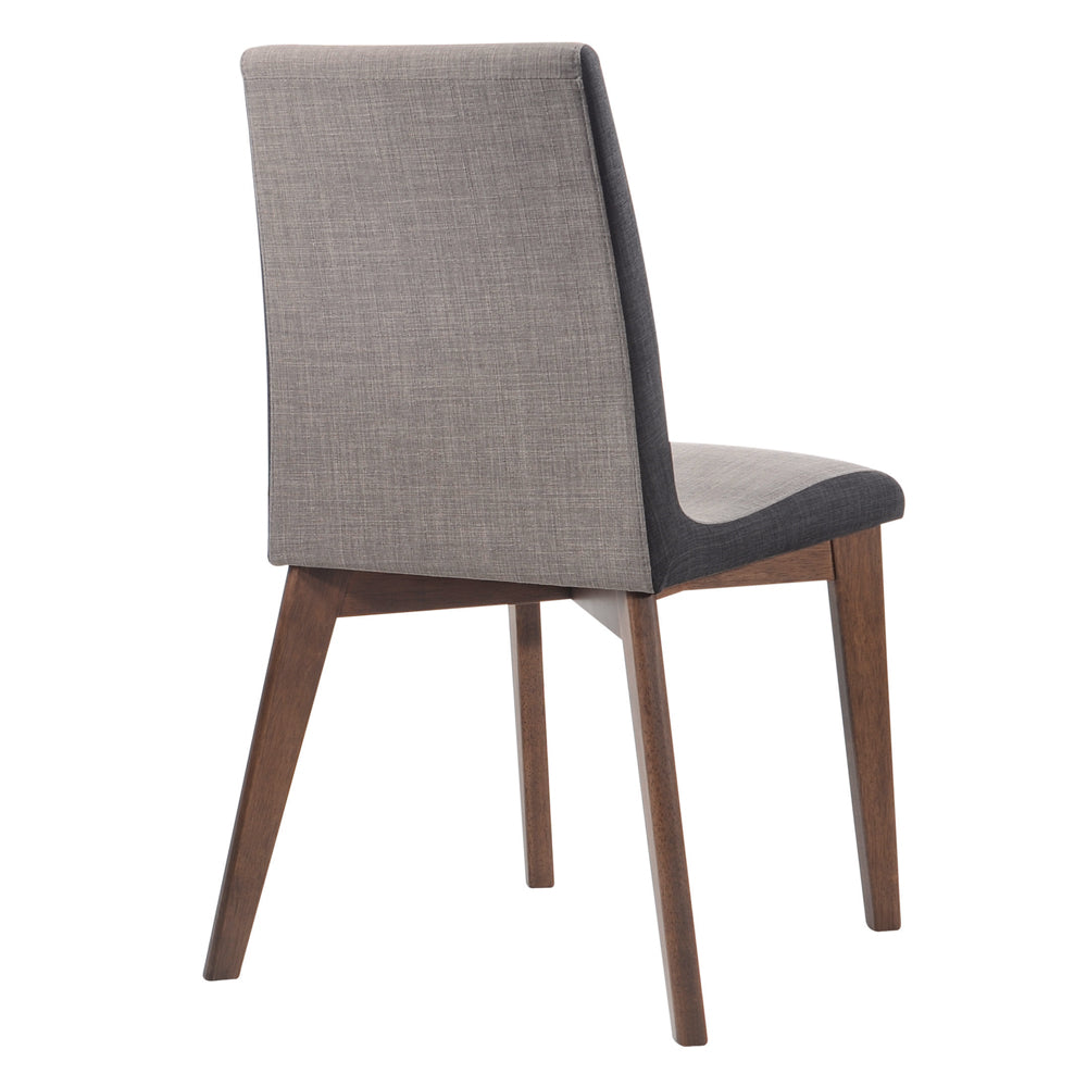 * Modern curved side chairs feature contrasting two-tone grey upholstery for enhanced visual interest and comfortable style