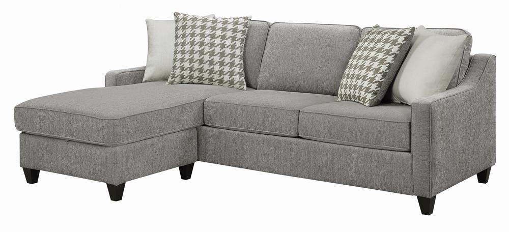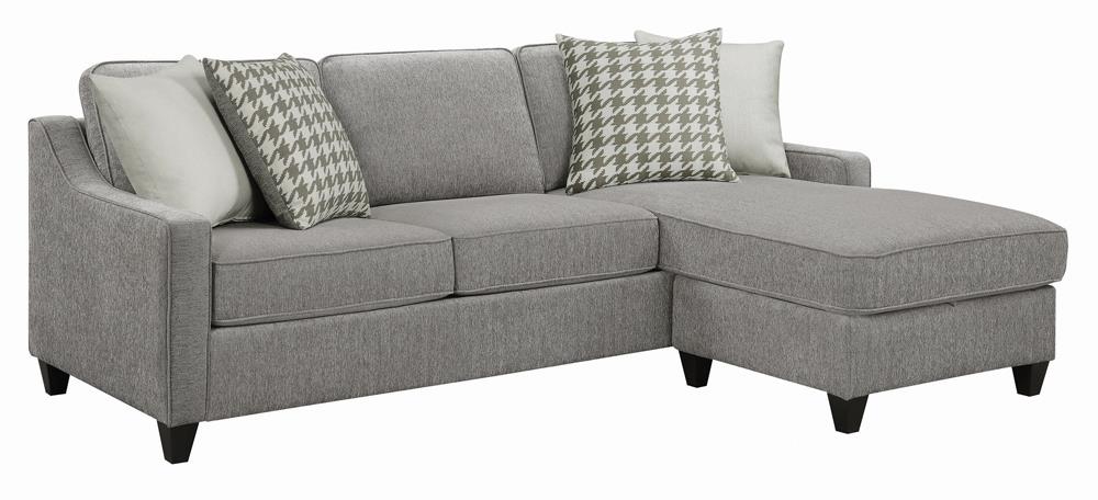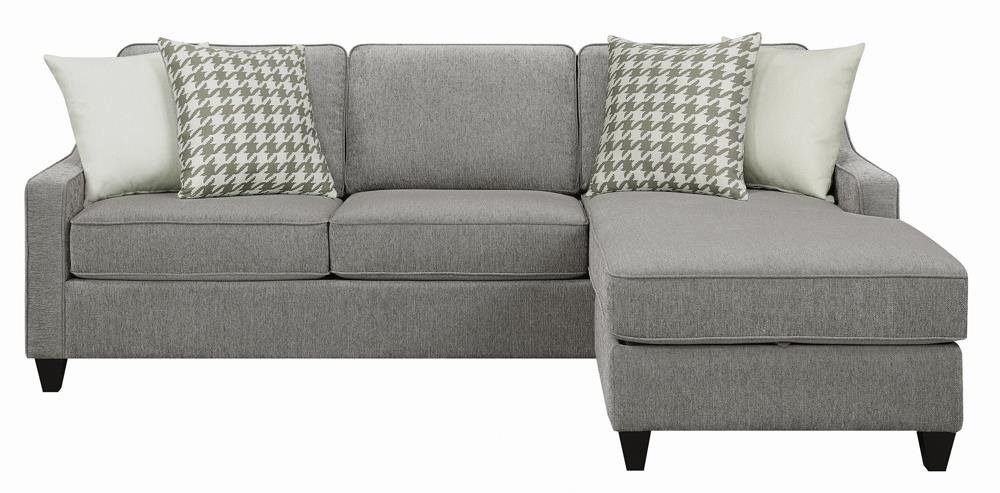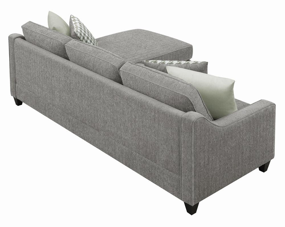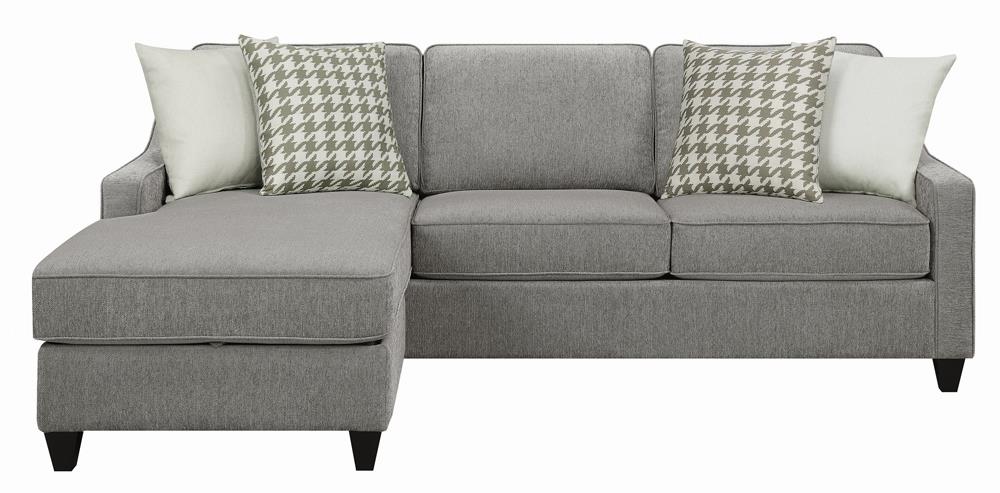 Celebrate the relaxing aura of casual comfort with this three-piece living room set. Padded arms welcome guests and family to the included sofa, loveseat, and chair. Exude contemporary charm with sleek edges and smooth upholstery. Relax into the padded cushions from the seat and back. Offer extra back support with built-in lumbar pillows.