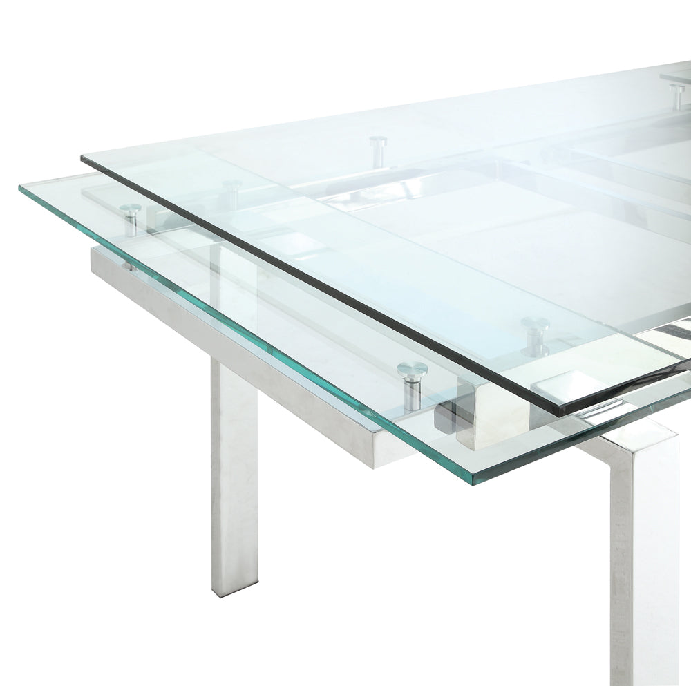 Wexford Glass Top Dining Table with Extension Leaves Chrome