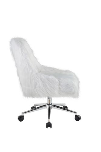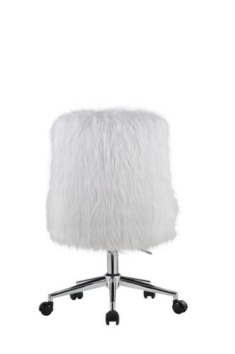 Padded Seat & Back: Faux Fur Swivel Seat with Adjustable Lift(360 Degree)5-Star Base with Caster Wheels: Chrome Finish