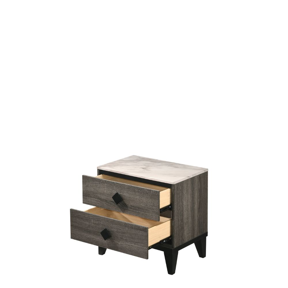 2 Drw Drawer: GLIDE Side Metal (3/4 Ext.), DOVETAIL English Front & Back, Veneer Lined (NO FELT), Safety Stop Included, Manual Close, Dust-Proof Included, Hardware: Single Pull Knob (Wood, Black Finish) CONSTRUCTION] Wooden Case-Leg: Wood (), Veneer (Foil), MDF Faux Marble Top Wooden Tapered Leg & Trim Base: Black Finish