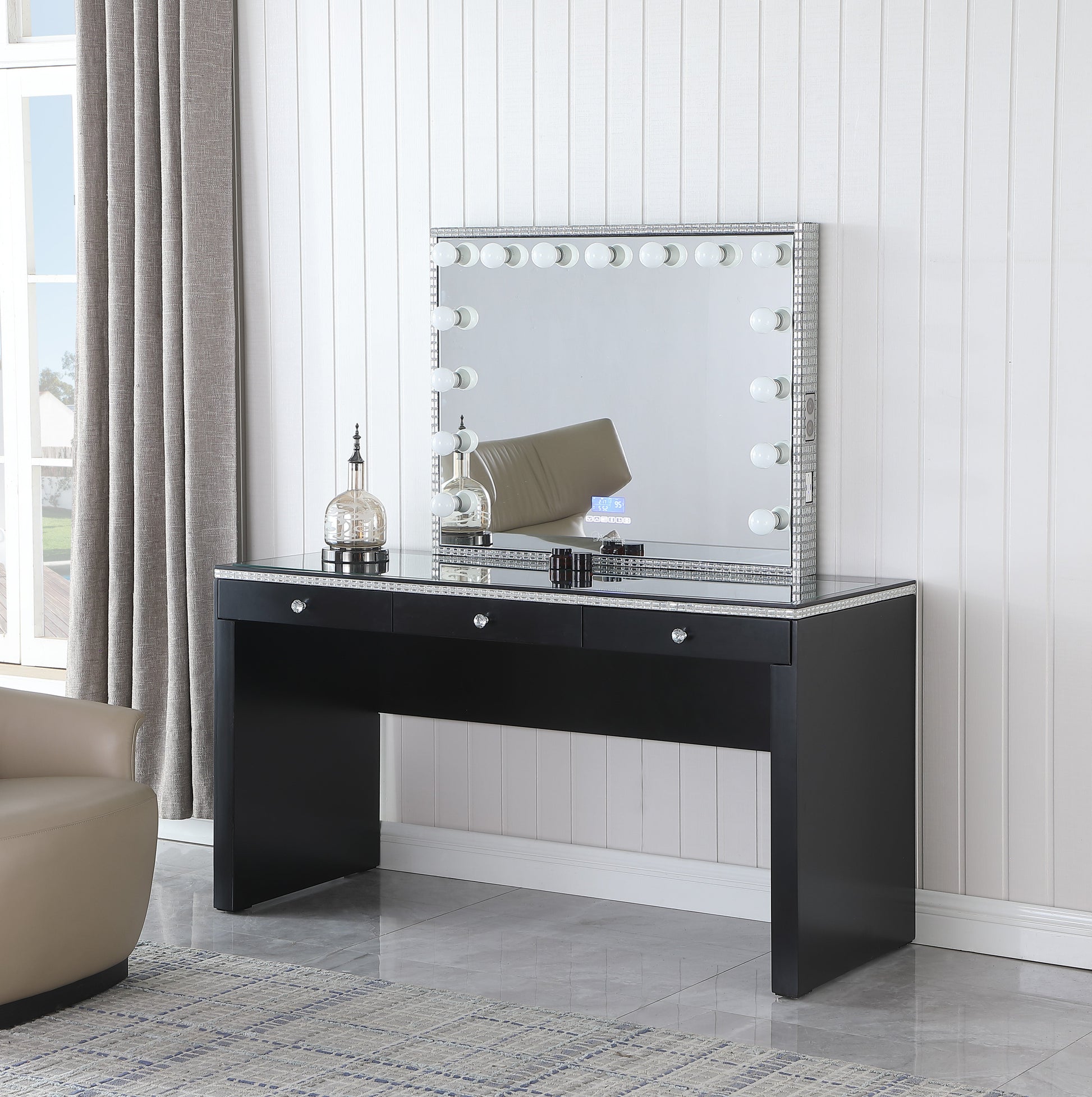 Black Vanity Desk W/ Bluetooth Hollywood Mirror