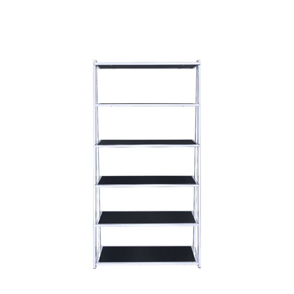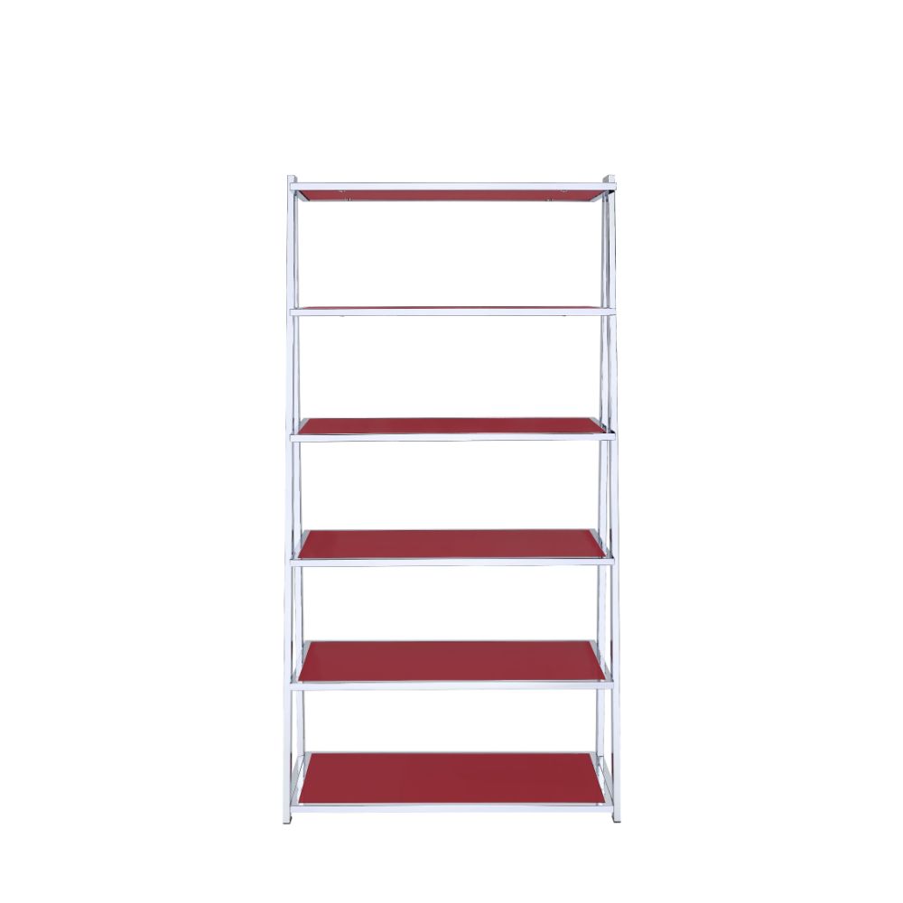 KD, Rectangular Bookshelf 6 Fixed Shelves Metal Frame: Chrome Finish (Open Back Panel) Wooden Shelves: High Gloss Finish