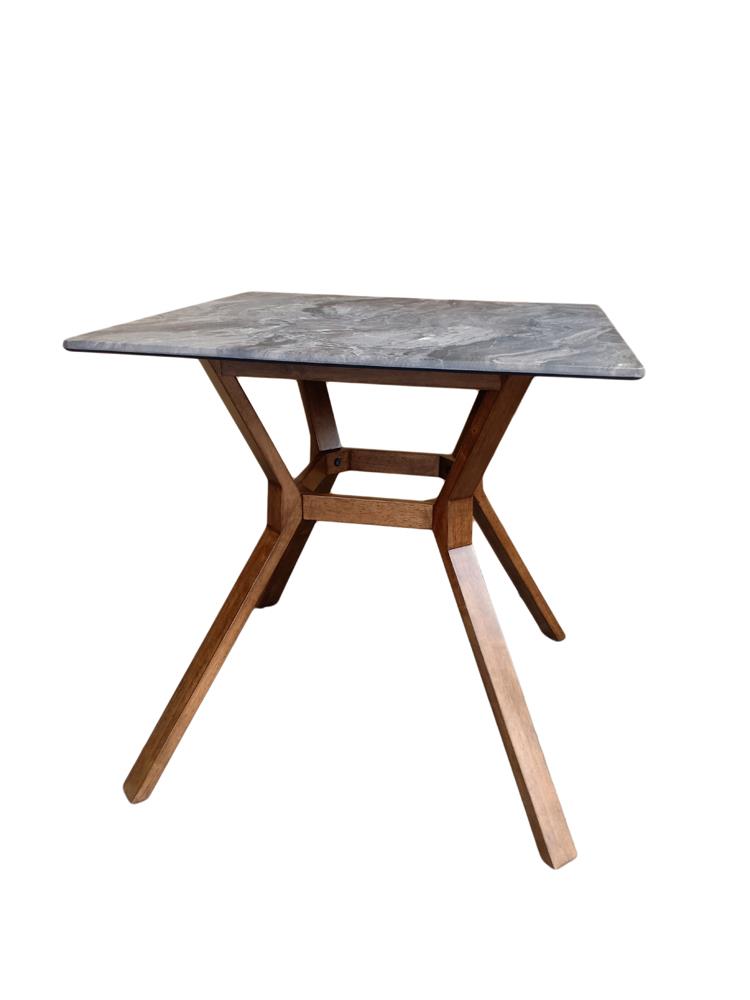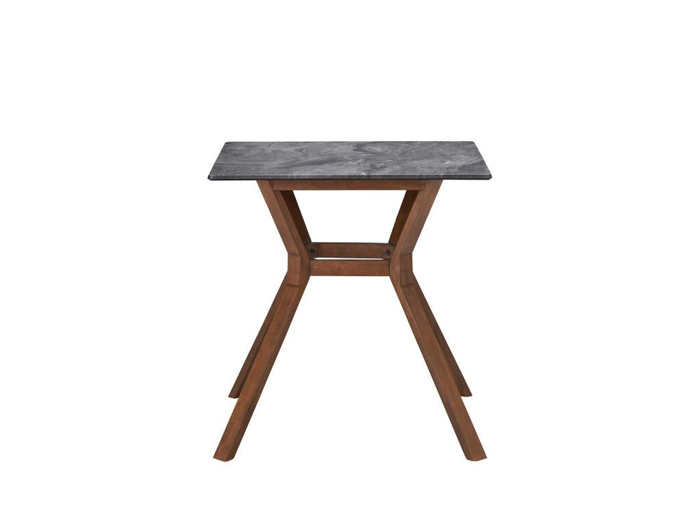 This counter height table is ideal for green-friendly homes and lifestyle. Featuring a sustainably crafted tabletop made of solid wood and recycled sawdust using a high pressured lamination process, this table is both sturdy and kind to the environment. With a square faux stone top, it is also easy to clean and quite resistant to the elements and accidents. Plus, the narrow and boomerang-shaped silhouette of the base lend a mid-century modern style that is sire to impress, complete with a natural walnut finish that complements numerous color palettes. Pull up a pair of counter height stool to accompany up to four people for cocktails or dinner.