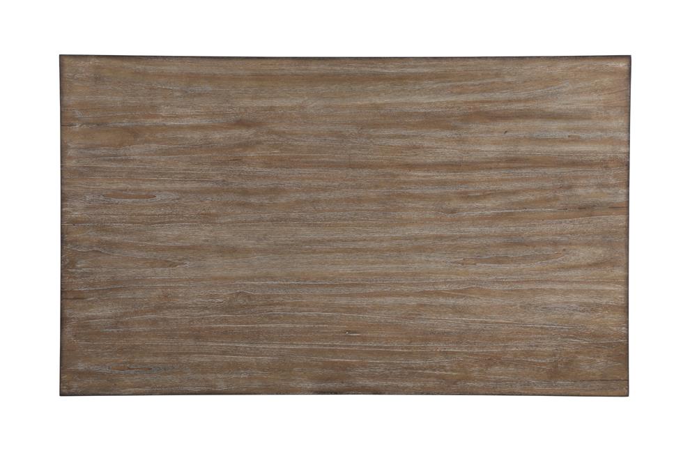 Complete your modern farmhouse dining room with this seven-piece dining set. Complete with one dining table and six side chairs, it offers a matching vintage white finish that lends a country charm. The spacious, rectangular dining table also features a chestnut colored, sandblasted wood tabletop with a dry brushed weathered finish. Each of the six chairs have a sturdy solid wood frame and flared backrests with open double-cross designs. Rest comfortably on their cushioned seats, wrapped in a high performance fabric in a grey hue that complements numerous color palettes.