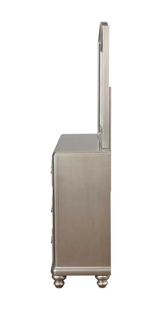 Accentuate the style of your master suite with luxe, opulent glamour. This dresser makes for an exquisitely elegant enhancement to your everyday routine. Gorgeous and glam, it features a highlight glaze over a shining metallic finish for sophisticated appeal. Felt-lined top drawers and a classic silhouette add a luxurious touch of style. This dresser includes protective drawers for added privacy and peace of mind.