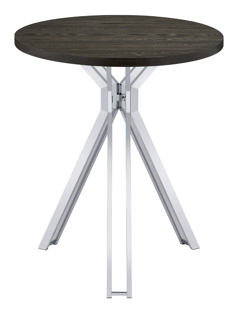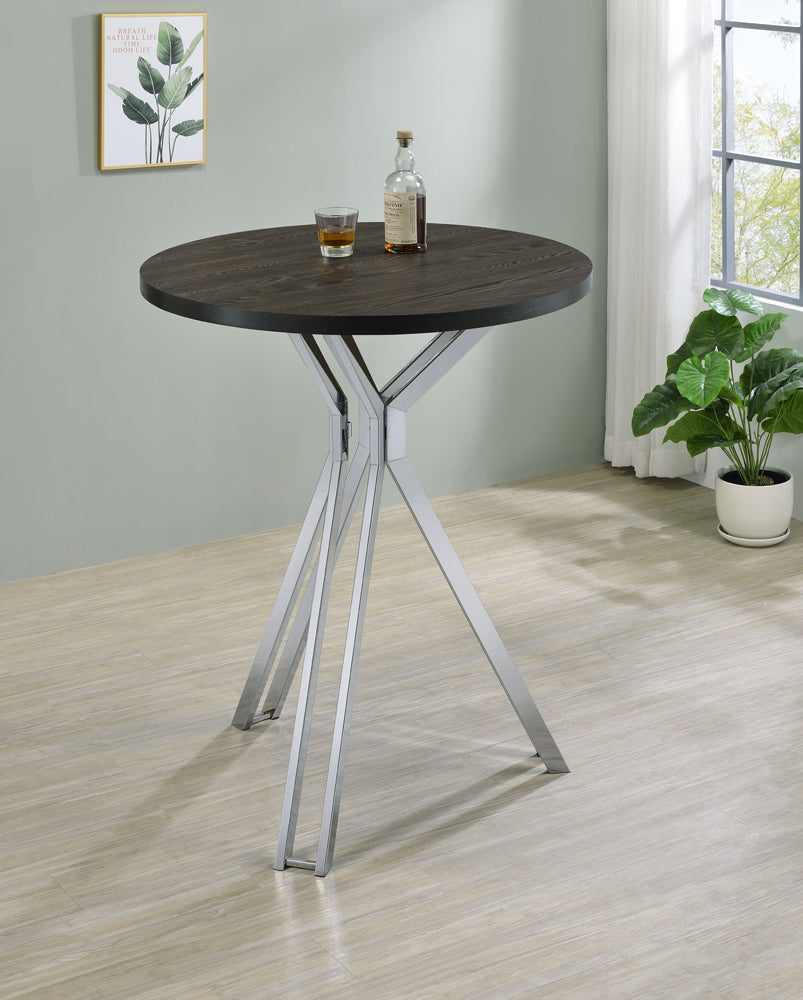 Edgerton Round Wood Top Bar Table Dark Oak and Chrome