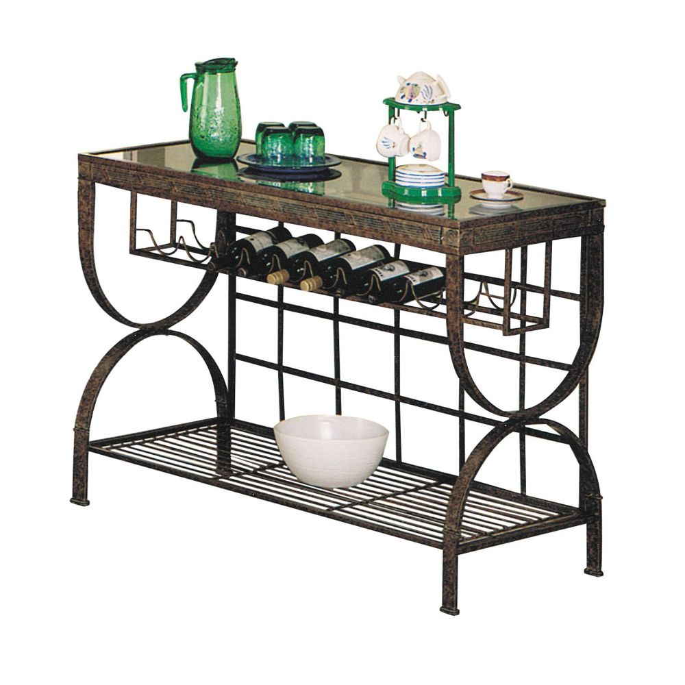 The Egyptian Server is the perfect choice for a transitional dining room. Whether it s breakfast a casual dinner or a celebration you ll enjoy in style with a gorgeous Egyptian style. Featuring metal base with a wine rack as well as a bottom shelf to store other accessories. This server will add comfort and make your dinning room look stylish.
