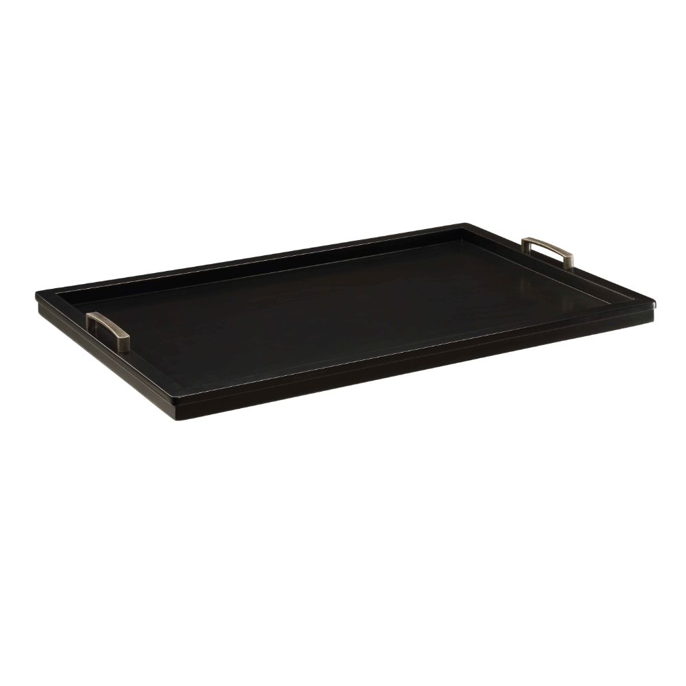 Combining the best parts of entertaining at home, the Fidelia console table with removable tray will highlight any room. The cabinet features a glass picture-frame door and sides for available storage. The antique finish and classic design details combine for a knockout conversation piece. Some assembly required.