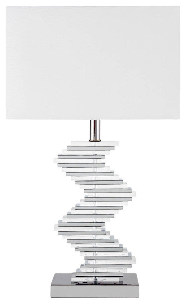 The Crystal Two Tone Paved Table Lamp (by Finesse Decor) features a dramatic and versatile crystal base with a linen shade.