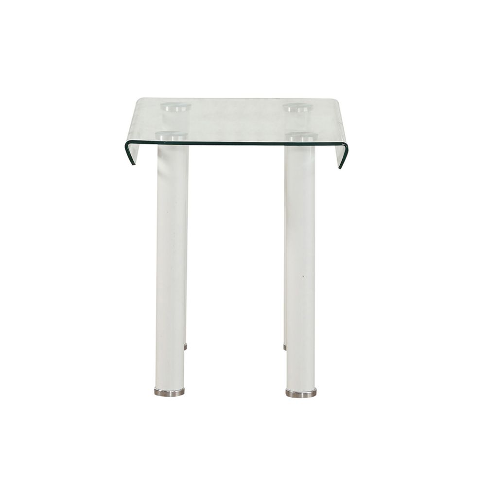 The Gordie collection offers a casual look, versatility and sleek style that will enhance any living room area. This end table features in rectangular clear tempered bending glass top and metal round leg in white power coating. Its classic design will transition through any style of seating and a great addition to your place. Making your living room space shines with this coffee table. This occasional collection is available in both of coffee and sofa table.