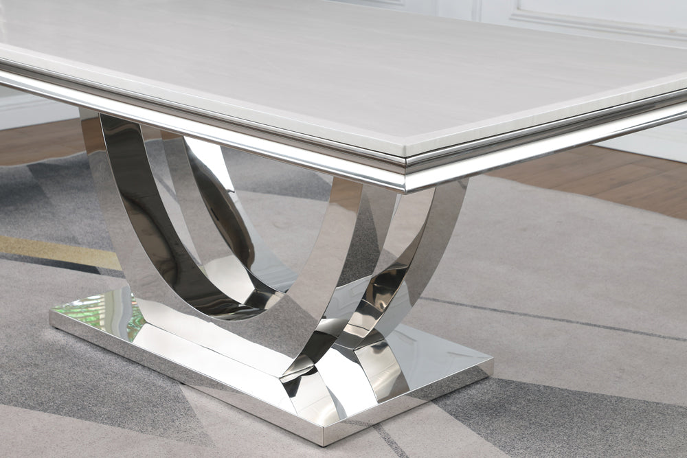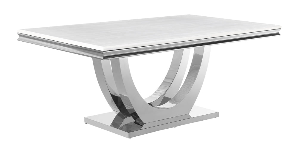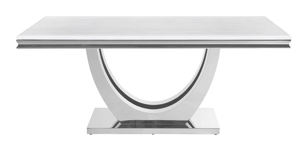 Kerwin Rectangle Faux Marble Top Dining Table White and Chrome