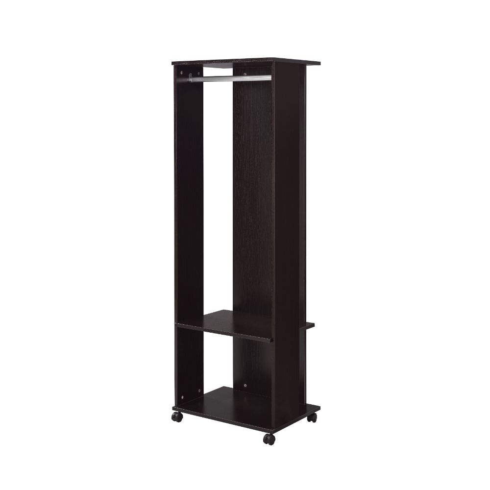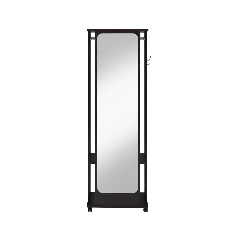 Rectangular Hall Tree Storage: 2 Open Compartment (Top with Hanging Rod) Wooden Open Frame and Mirrored Back Panel Base with Caster Wheels