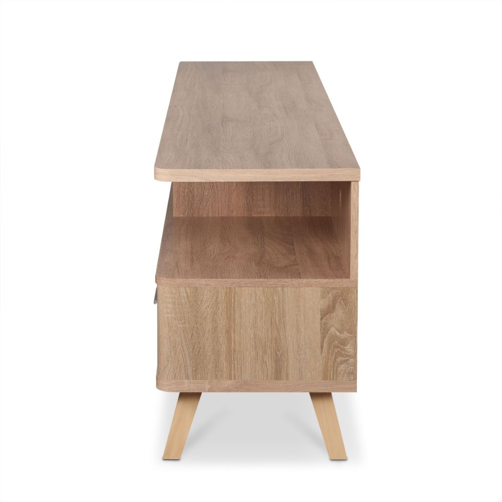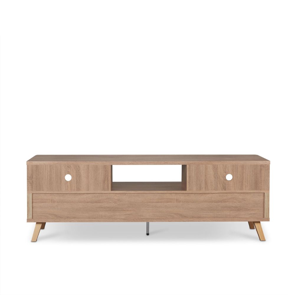 The Lakin TV stand versatility and style will blend masterfully in your living room area. The storage feature offers plenty of space to keep your entertainment components: three drawers and three media compartments. Carefully constructed from selected wood and veneers in rustic natural Finish which gives this piece an elegant and sleek appeal.