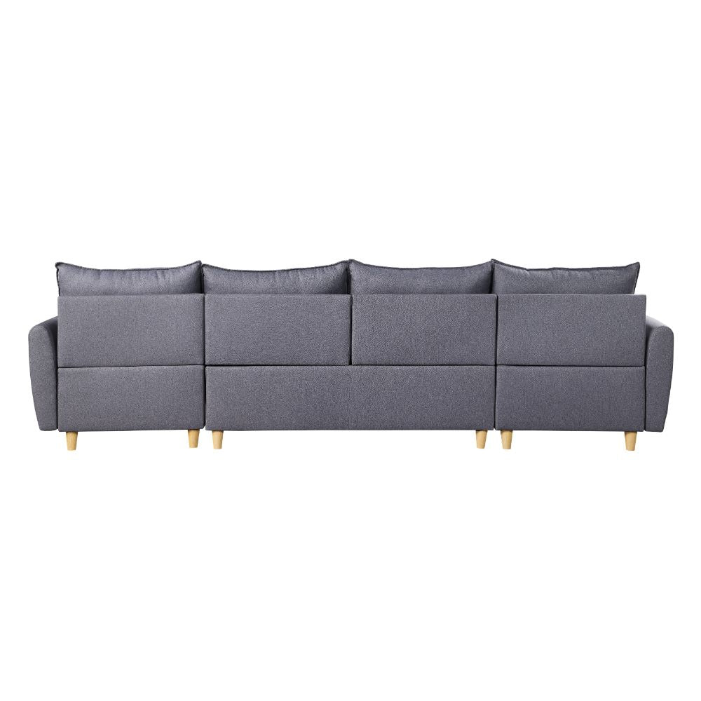 Sectional Chaise (Stationary) "L" Shape (Reversible) Includes: 4 Stationary Seats (Love, Chaise & 1 Armless Chair) Loose Back & Tight Seat Cushion CONSTRUCTION: Full Foam Seat, Inner Wooden Frame+Foam BACKREST: Cushion ARMREST: Slightly Flared Wooden-like Tapered Leg