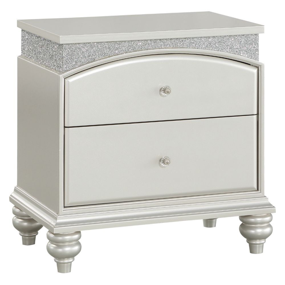 2 Drw Drawer: Arched Top Drawer, GLIDE Side Metal (Undermount, Full Ext. ), DOVETAIL French Front & English Back, FELT-LINED TOP Drawer, Safety Stop, Self-Closing, Hardware: Single Knob (Crystal like) CONSTRUCTION Wooden Case-Leg: Wood (Poplar, MDF), Sparkling Rhinestones Inlay Wooden Bun-Turned Legs