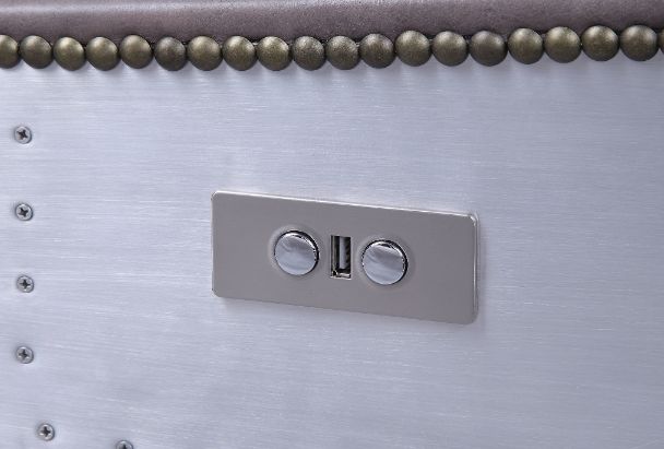 A perfect mixture of industrial style and comfort. The Metier Power Motion Recliner is accented by genuine leather and aluminum patchwork for a complete industrial look. It features tight seat with back cushions and offers a full foam seat with genuine leather fully covering all contact areas, giving user a warm touch and perfect feeling. You will love the pure aesthetics and textures of industrial style design.