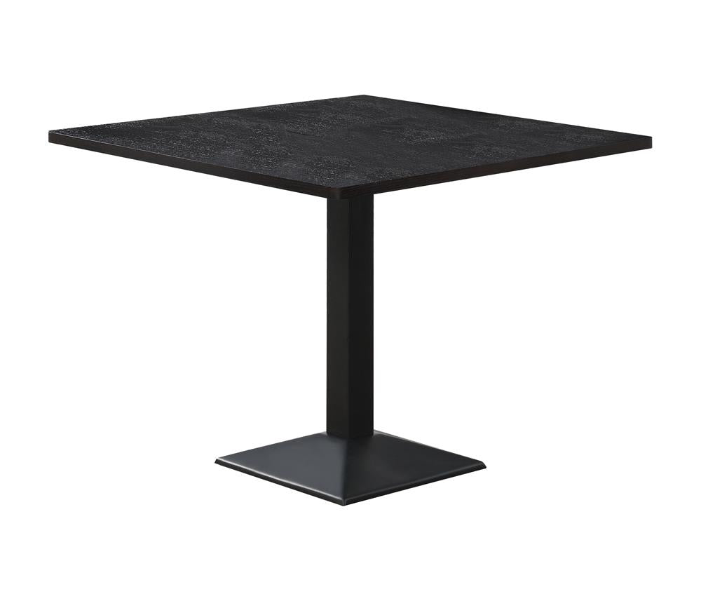 Sleek and stylish, this minimally designed modern dining table is perfect for compact spaces. Capable of seating up to four guests or family members, this square dining table features a supportive pedestal-style frame with a square-shaped flush base, offering an open space beneath for sliding in chairs. Dark tones throughout, the pedestal base features a metal construction and a smooth gunmetal finish, while the wood tabletop surface displays an espresso oak veneer. Allow this dining table to double as a game table in a media room or entertainment area. With a dark color palette and sleek lines, it is sure to add a contemporary flair to any home.