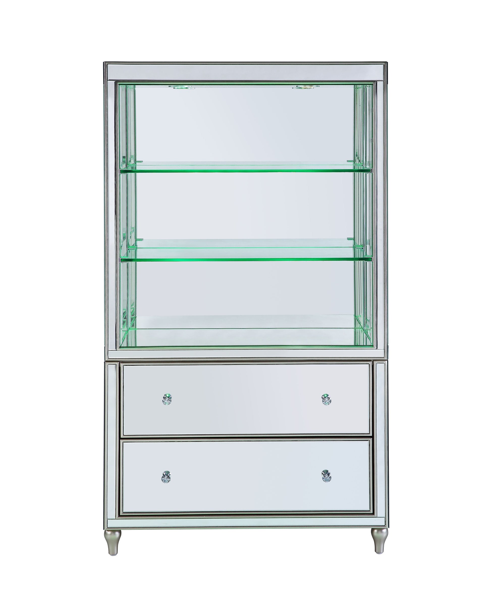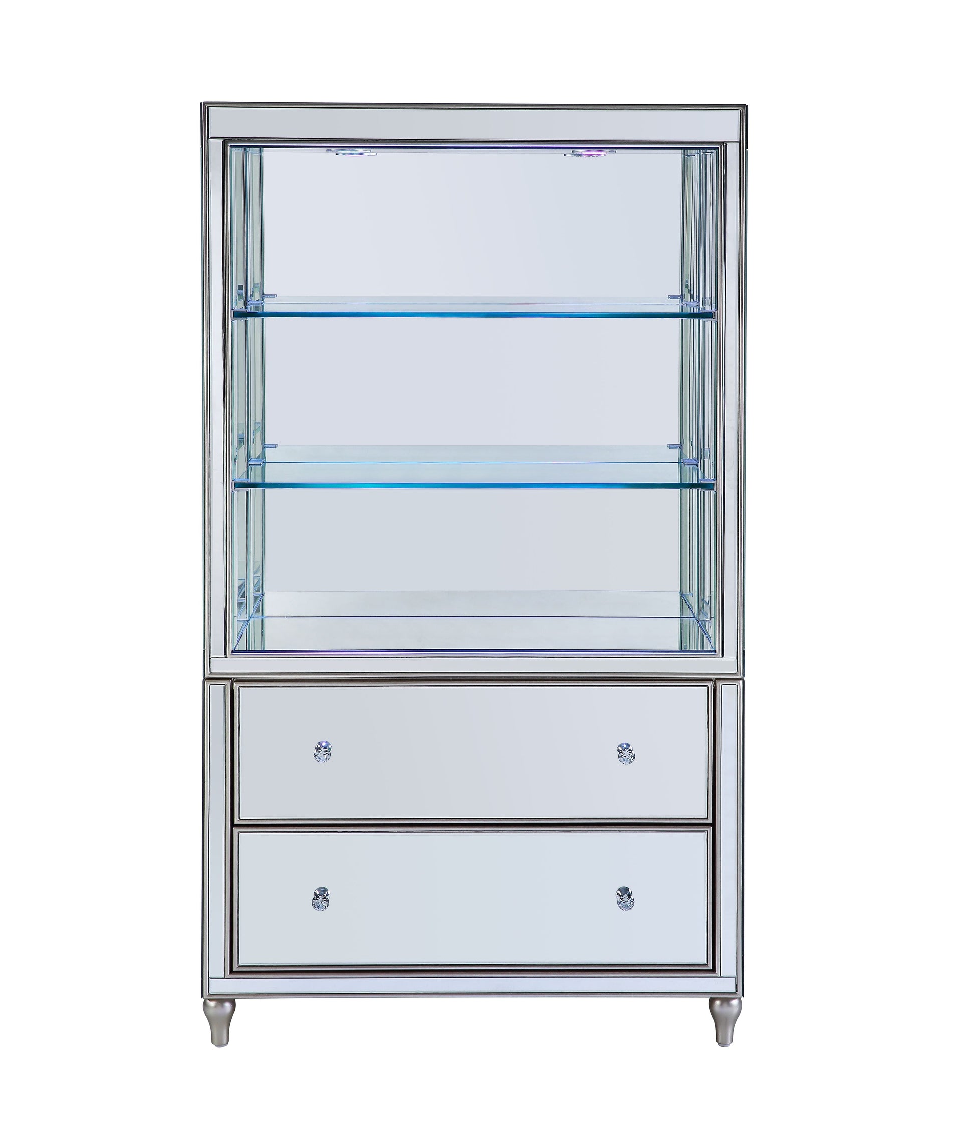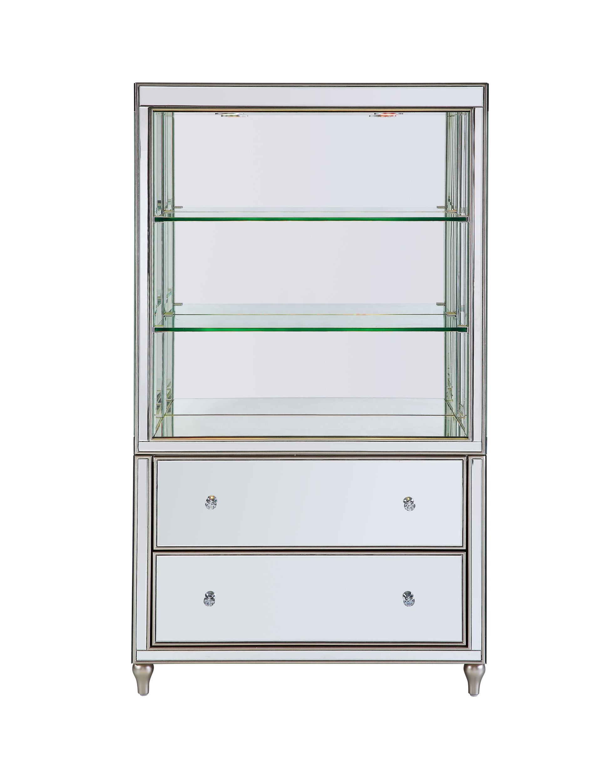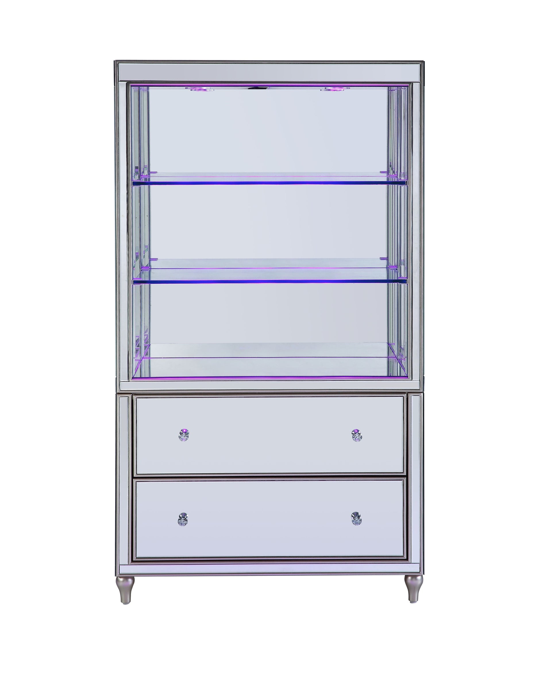 All about glam sheen and shine, the Persis Bookcase will take your breath away at first sight. It's mirrored surface can reflect natural light and give the illusion of space. The bookcase features three tier shelf with LED lighting that provide the ideal place to display your cherish book collections. There are also two storage drawers with self closure and safety stop that keep drawers from slamming and felt-lining found in every drawer keeps your precious items safe.
